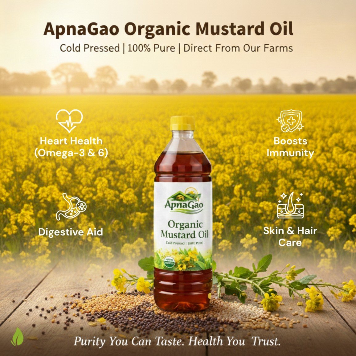 No additives, no preservatives, our oil is just pure, unadulterated goodness. So, whether it’s drizzled over a salad or used to fry up your favorite dishes, our Mustard Oil adds flavors that carry the warmth of family, no matter how far away you may be.